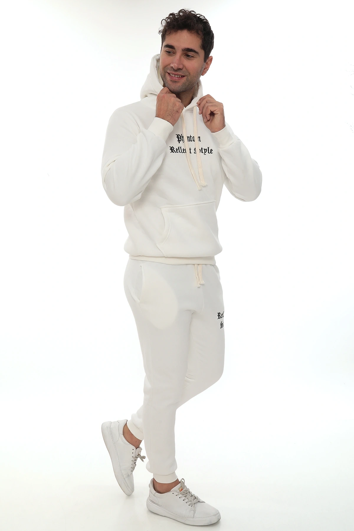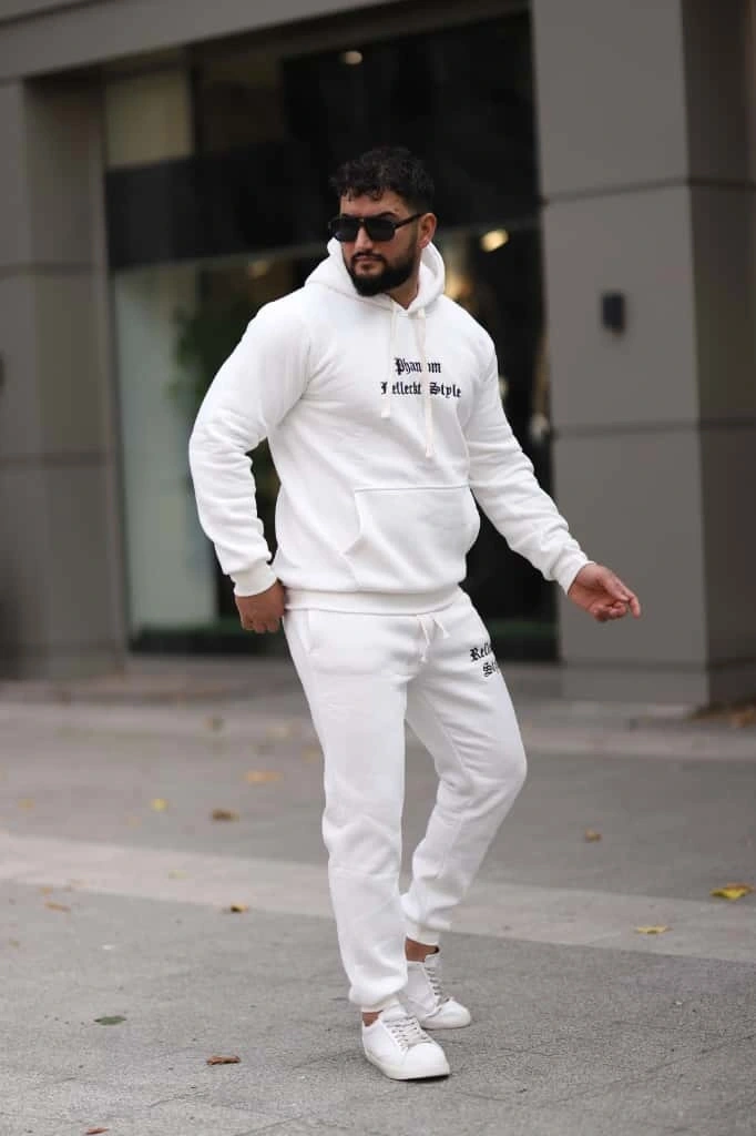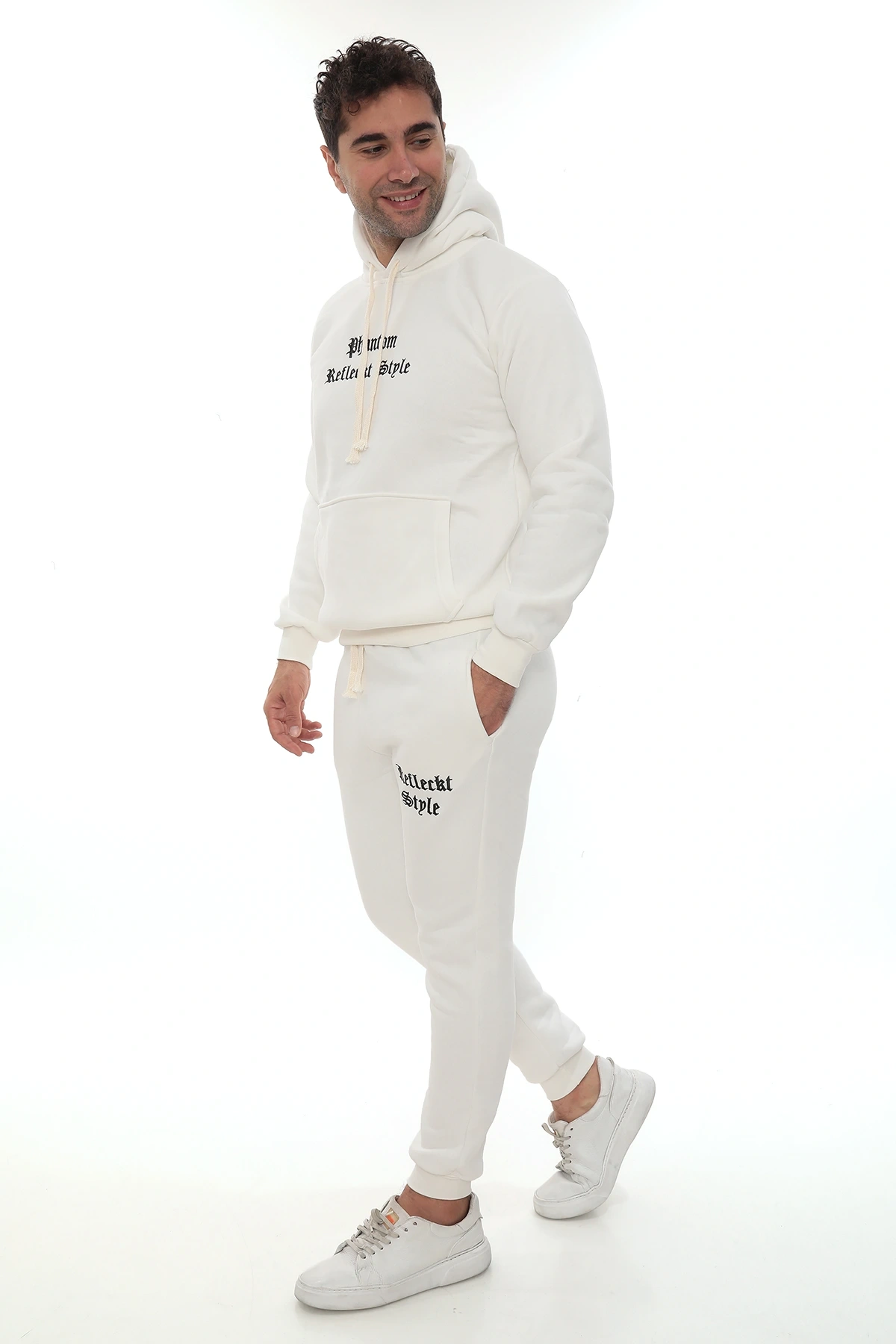 Beyaz İçi Polarlı Şık Erkek Eşofman Takımı, spor giyinmeyi seven erkekler için ideal bir seçenektir.