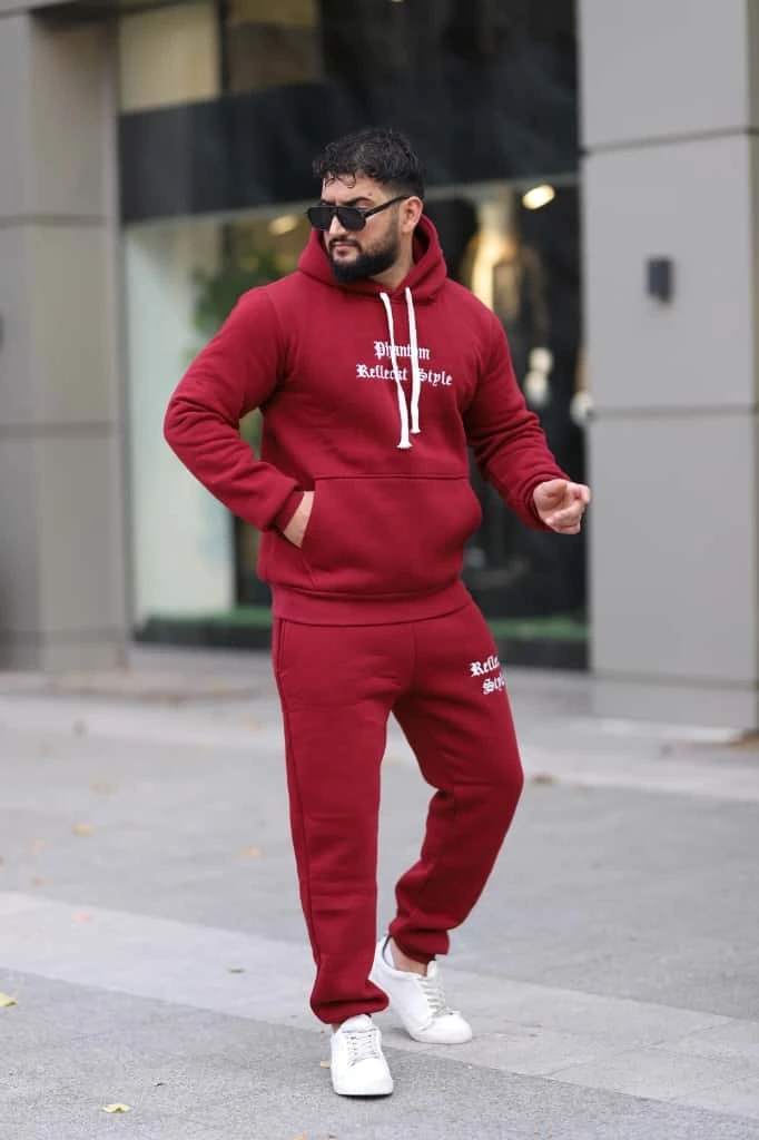 Bordo rengiyle modern bir görünüm sunan bu eşofman takımı, spor yaparken ya da günlük hayatta rahatlıkla tercih edebileceğiniz bir parçadır.