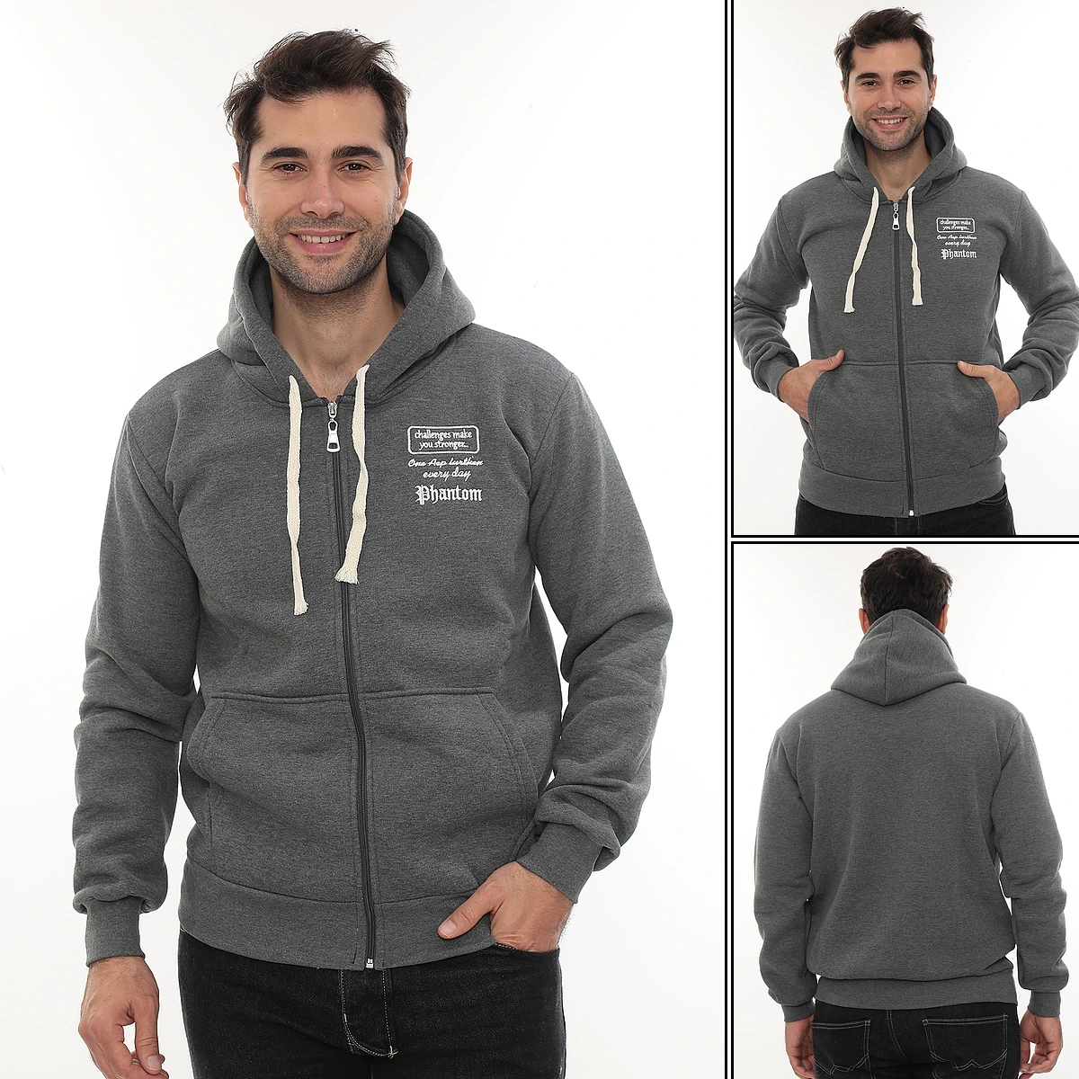 Phantom Jeans'in erkek koyu gri standart fit normal kesim içi polarlı tam fermuarlı kapüşonlu pamuklu sweatshirt'ü ile şıklığı ve rahatlığı bir arada yaşayın.