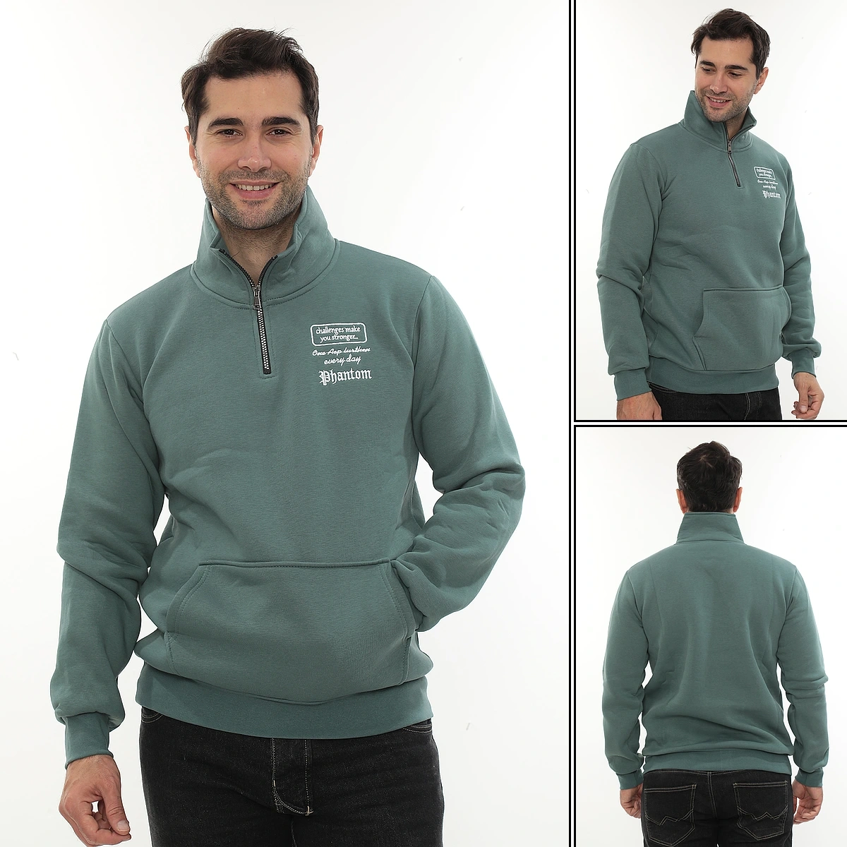 PHANTOM JEANS Erkek Petrol Standart Fit Normal Kesim Içi Polarlı Yarım Fermuarlı Dik Bato Yaka Pamuklu Sweatshirt, şıklık ve rahatlığı bir arada sunar.