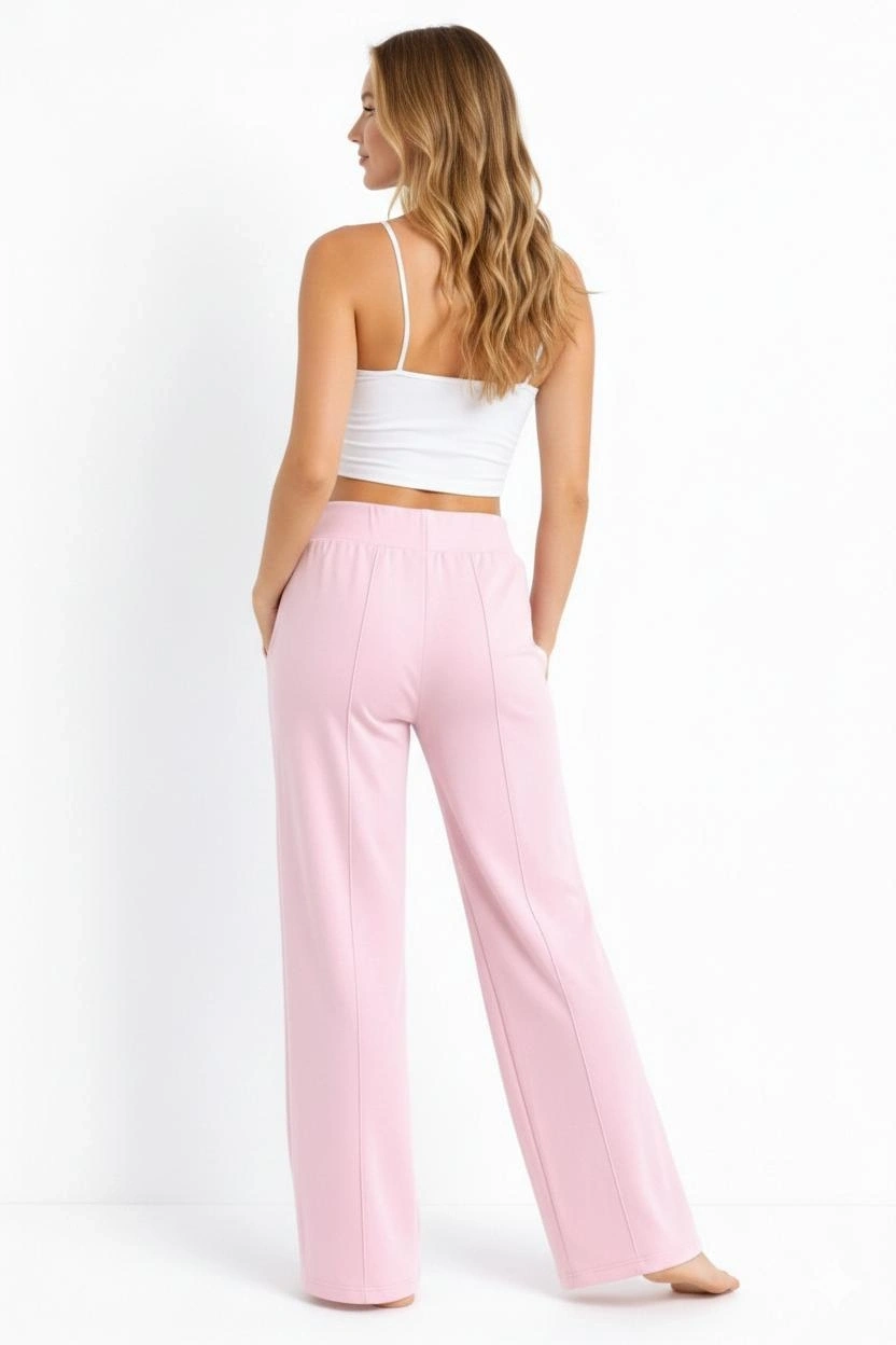 Kadın Pembe Modal Bol Paça Çımalı Yüksek Bel Yumuşak Dokulu Beli Lastikli Likralı Pantolon, Phantom Jeans'in zarif ve konforlu tasarımlarından biridir. Bu şık pantolon ile hem şıklığı hem de rahatlığı bir arada bulabilirsiniz.