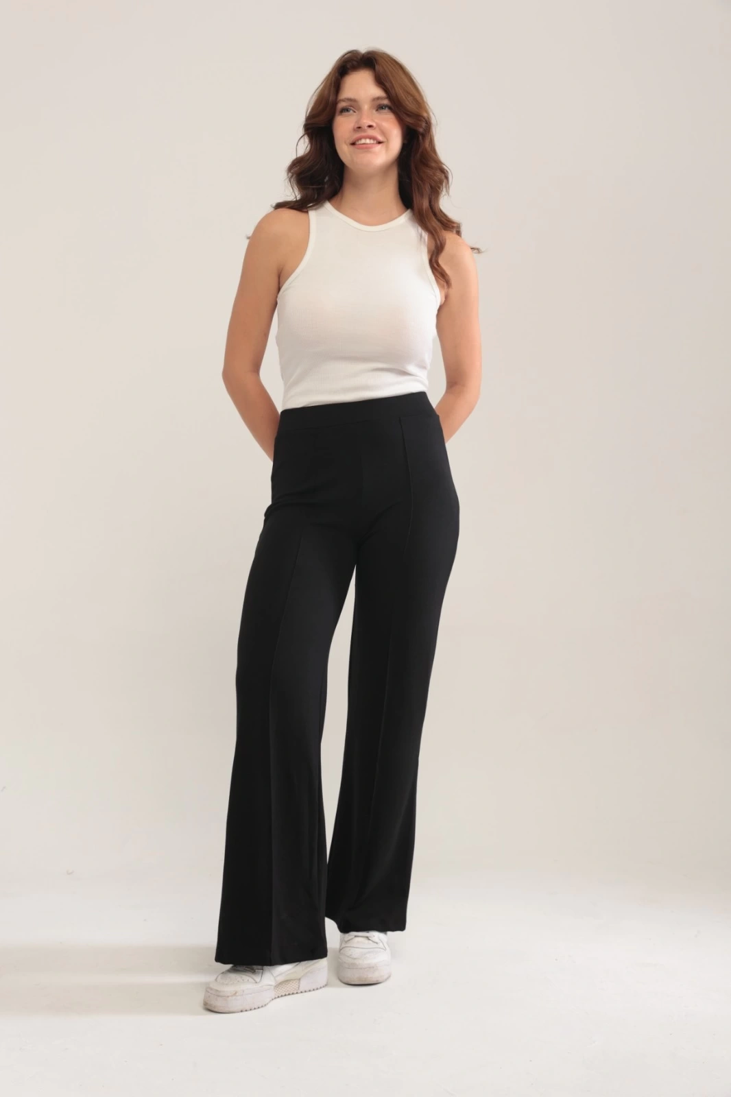 PHANTOM JEANS markasıyla sunulan Kadın Siyah Modal Bol Paça Çımalı Yüksek Bel Yumuşak Dokulu Beli Lastikli Likralı Pantolon, şıklığı ve rahatlığı bir arada sunuyor.