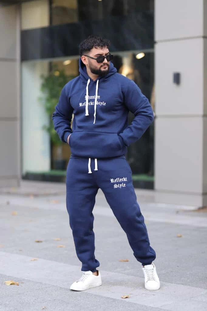 PHANTOM JEANS markalı bu şık erkek eşofman takımı, rahatlığı ve şıklığı bir arada sunuyor.
